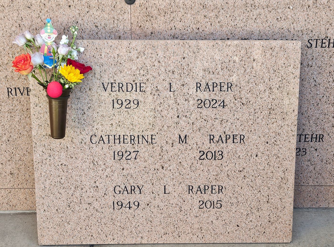 After the memorial service, Verdie’s columbarium niche was thoughtfully adorned with a floral arrangement and a small clown figurine, symbolizing his lifelong commitment to spreading joy. French Funerals & Cremations ensured that every detail of Verdie’s life was celebrated with care, respect, and a personal touch, allowing his family to say goodbye in a way that truly honored his legacy.