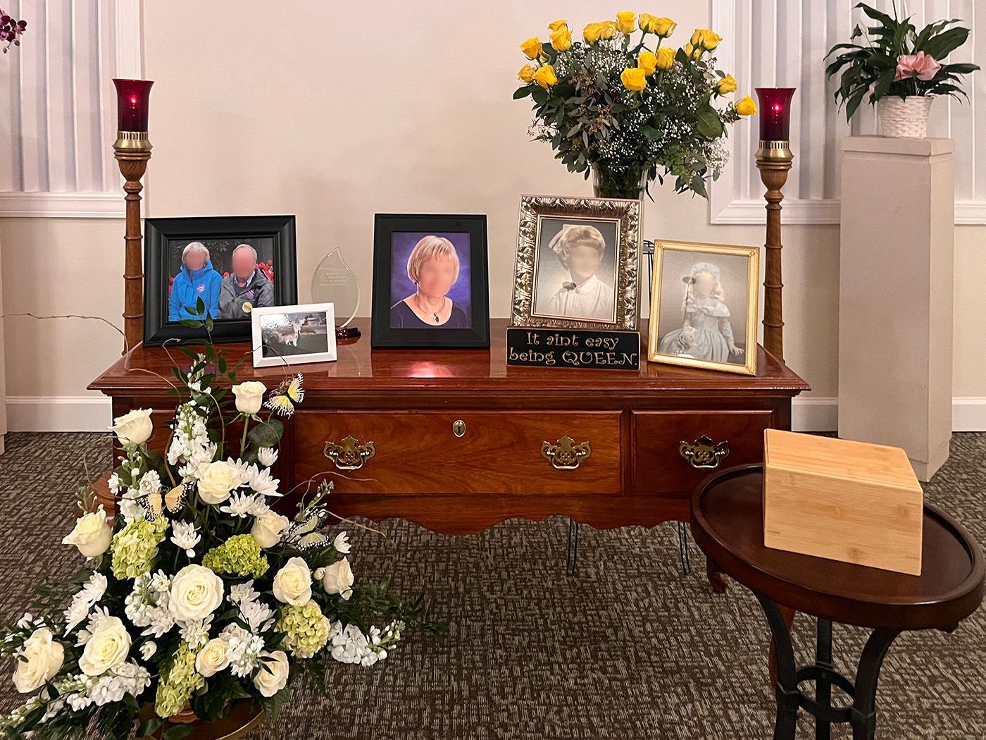 Central to the setting was her urn, respectfully placed to remind all of her enduring presence, making this not just a reflection of her hospitality but also a comforting space for guests to connect, share memories, and celebrate her life. This dinner party-themed memorial at our Wyoming & San Antonio location was an unforgettable tribute to a life well-lived, emphasizing the joy of fellowship.